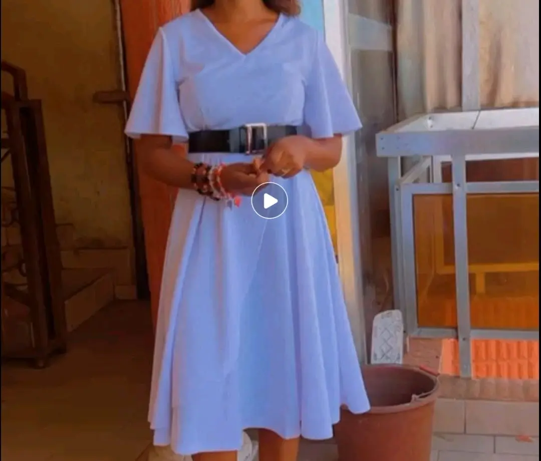 European and American Women's Trumpet Sleeve Solid Color Large Size African Career Dresses With Belt